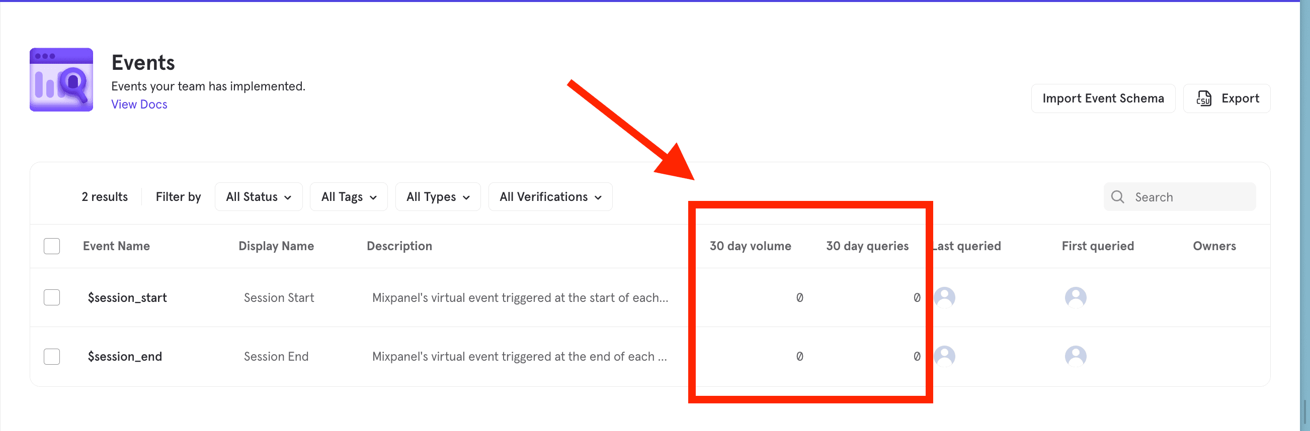 Viewing Query Volumes for Events and Properties